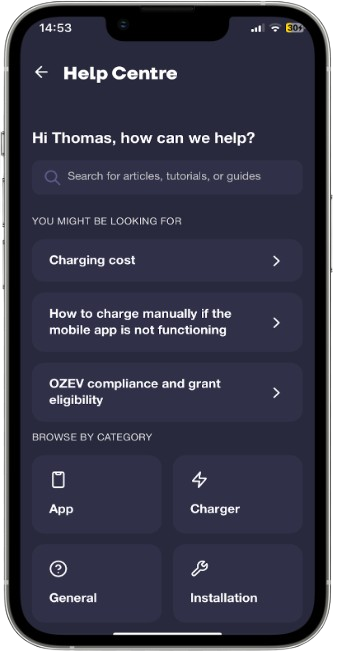 We’ll ask for your charger ID, which you can find by tapping [Devices] within the [Account] section of the app and opening the ‘EV charger’ details.