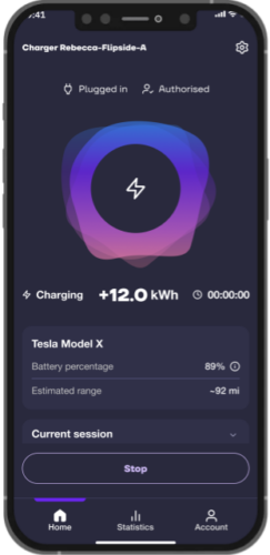 The app enables you to view real-time information about your charging sessions so you can see how much power has been used to charge your electric car, the cost of your charge, the CO2 emissions of your charge, and how long each charging session took.